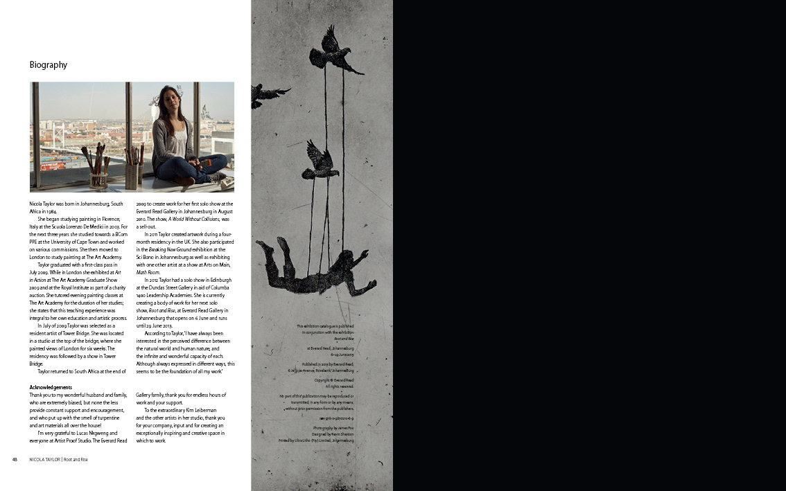 Designed by Kevin Shenton Photography by James Fox Printed by Ultra Litho (Pty) Limited, Johannesburg This exhibition catalogue was published in conjunction with the exhibition Root and Rise at Everard Read Gallery, Johannesburg 6–29 June 2013 Published in 2013 by Everard Read, Copyright © Everard Read isbn 978-0-9870210-6-9