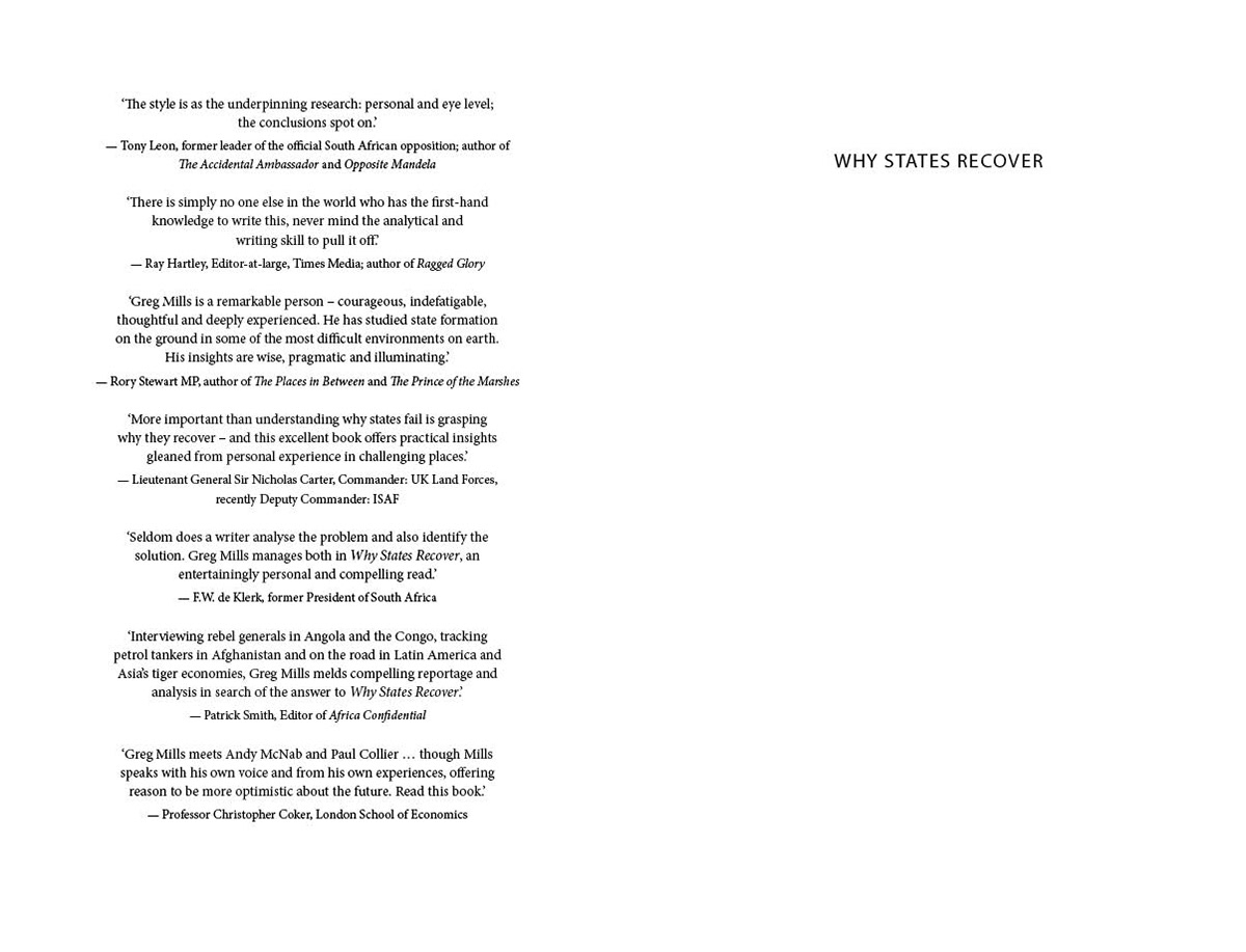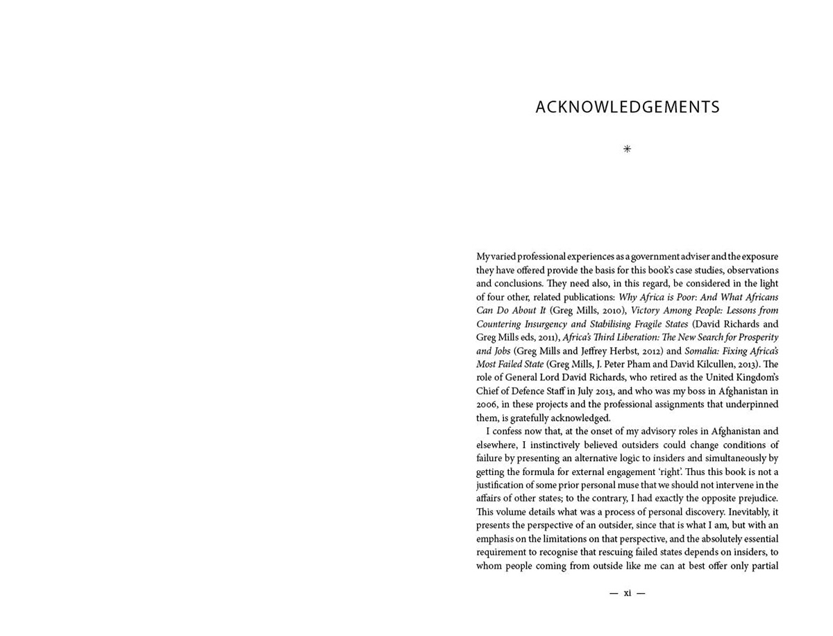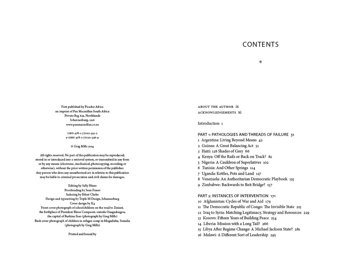 First published by Picador Africa an imprint of Pan Macmillan South Africa isbn 978-1-77010-325-2 e-isbn 978-1-77010-326-9 © Greg Mills 2014 Design and typesetting by Triple M Design, Johannesburg Cover design by K4 Front cover photograph of schoolchildren on the road to Ziniaré, the birthplace of President Blaise Compaoré, outside Ouagadougou, the capital of Burkina Faso (photograph by Greg Mills) Back cover photograph of children in refugee camp in Mogadishu, Somalia (photograph by Greg Mills)