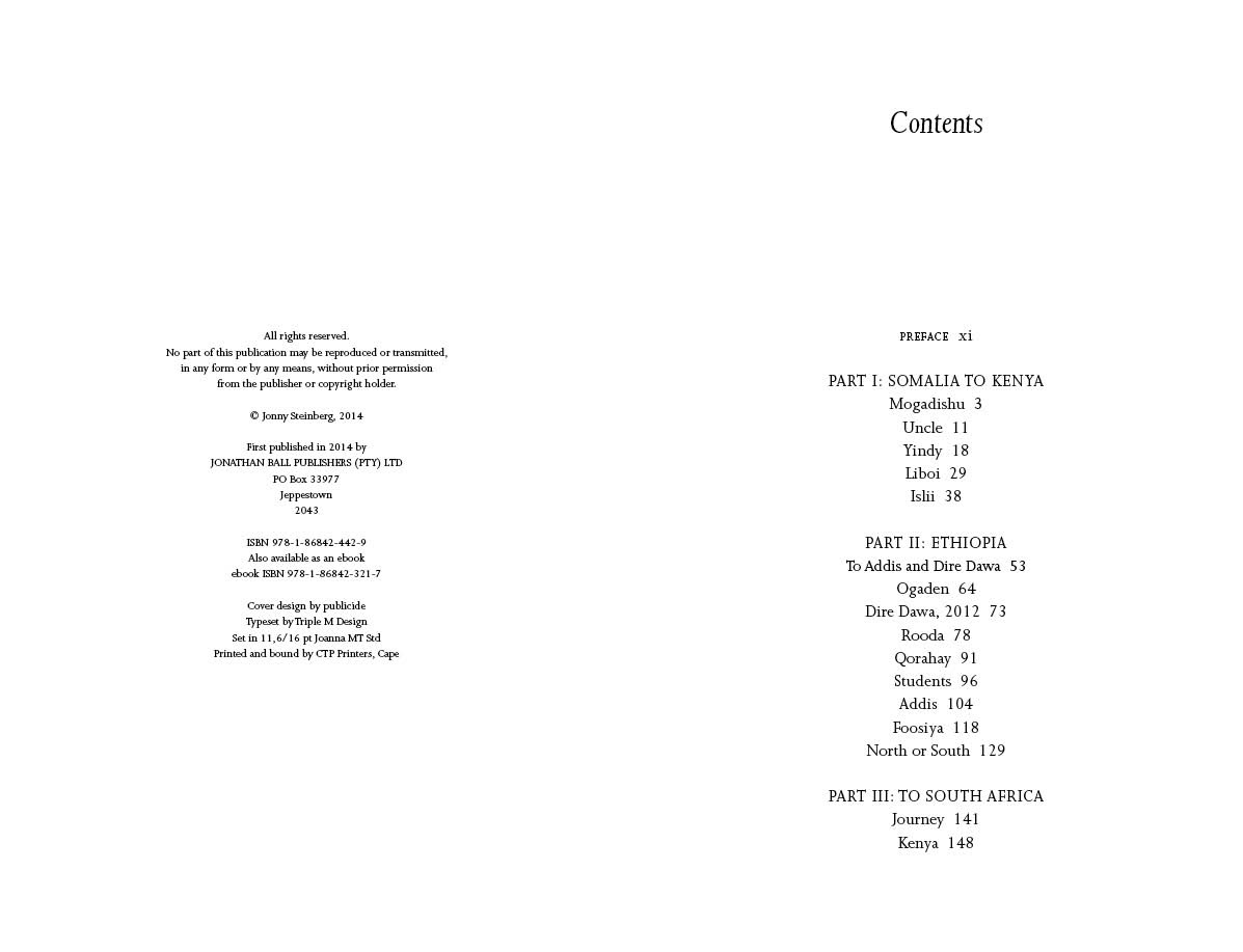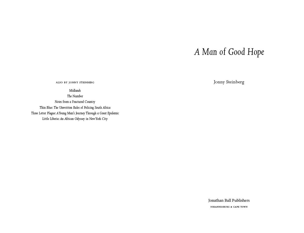 © Jonny Steinberg, 2014 First published in 2014 by JONATHAN BALL PUBLISHERS (PTY) LTD ISBN 978-1-86842-442-9 ebook ISBN 978-1-86842-321-7 Cover design by publicide Typeset by Triple M Design Set in 11,6/16 pt Joanna MT Std Printed and bound by CTP Printers, Cape