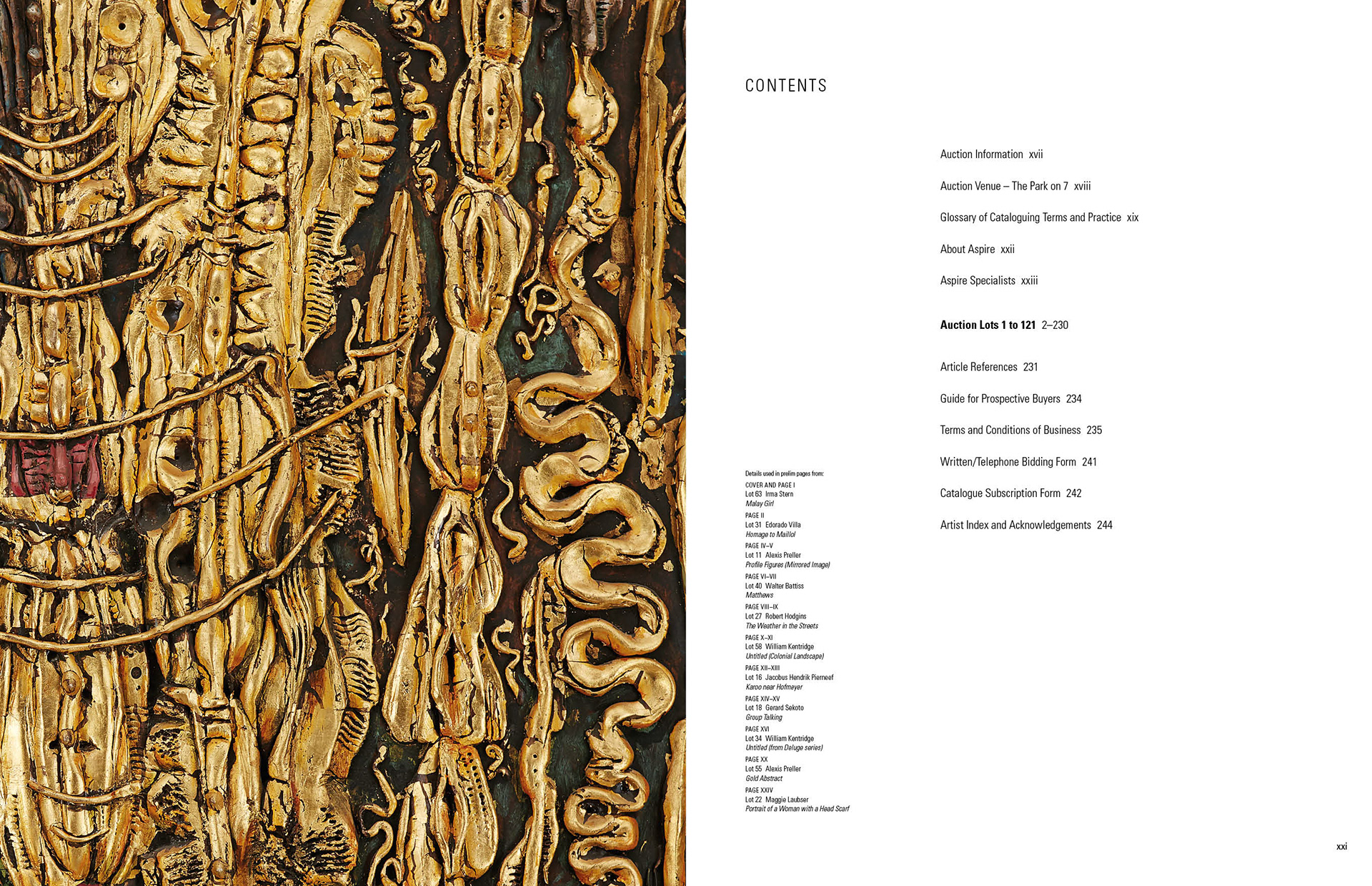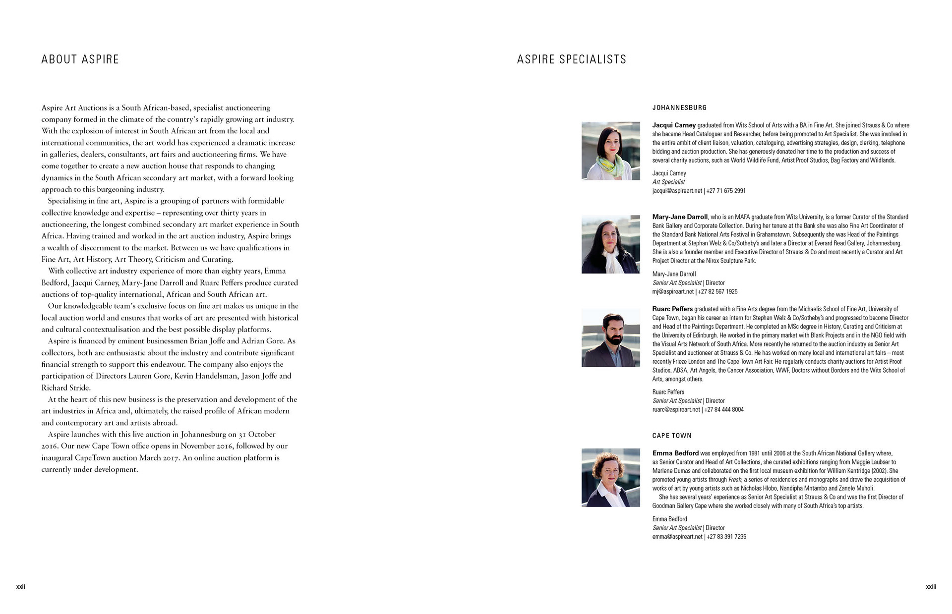 Aspire Art Auctions – Historic, Modern & Contemporary Art October 2016 Auction Catalogue DESIGN Kevin Shenton | Triple M Design PHOTOGRAPHY Nina Lieska | Repro Pictures Assisted by Struan Watt