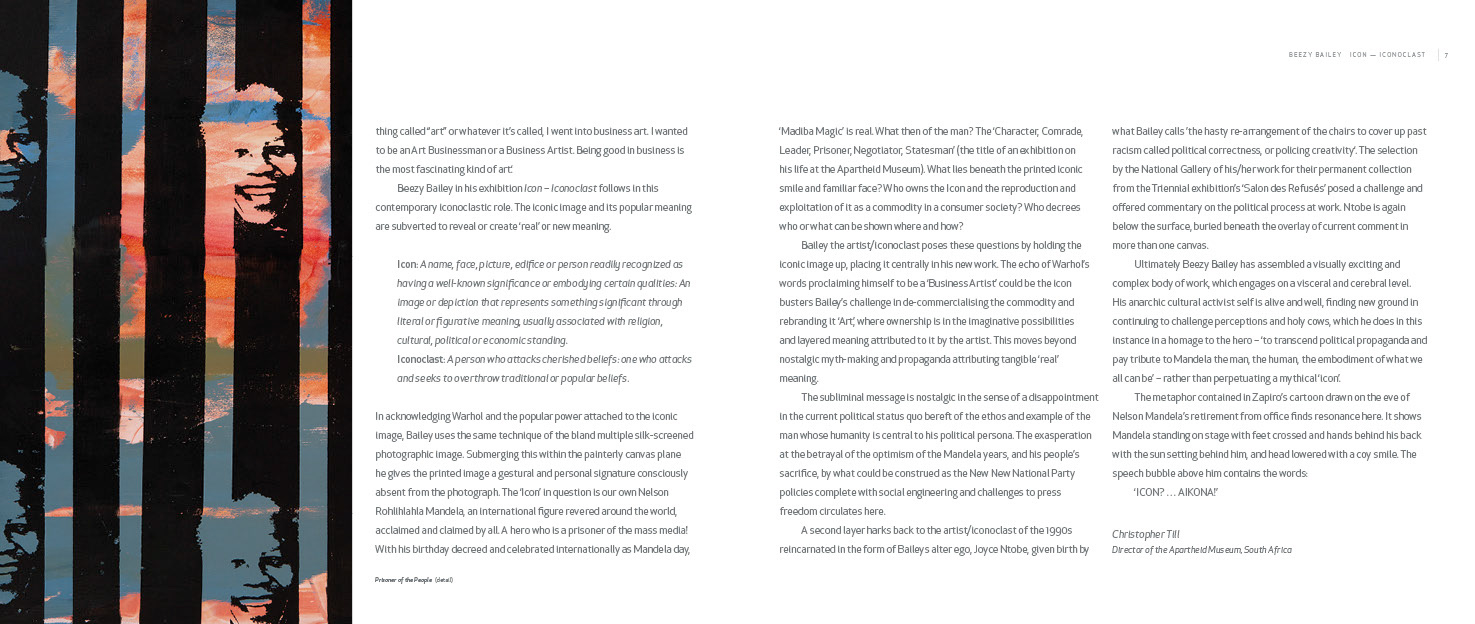 Beezy Bailey – Icon - Iconoclast Client: Everard Read in Johannesburg Binding: soft cover Printed by: Ultra Litho Johannesburg Date: 2010