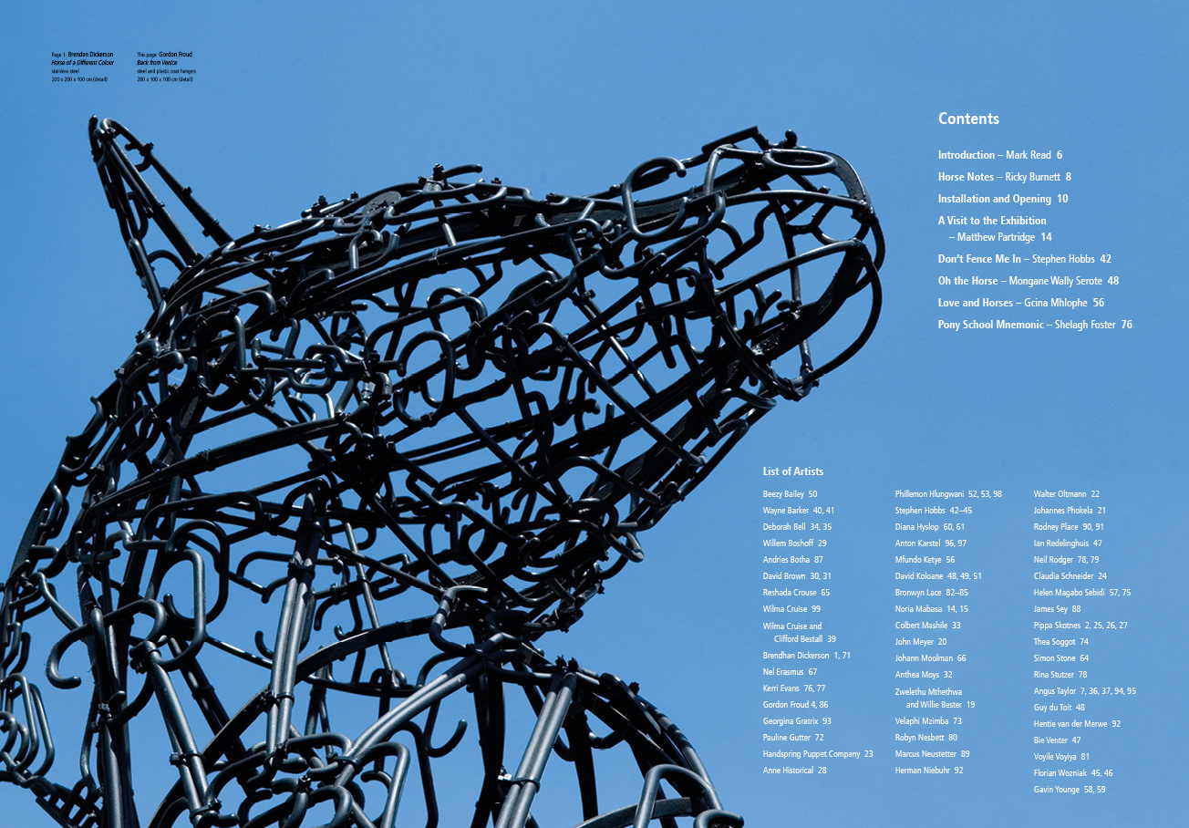Circa Gallery Horse Exhibition Catalogue Client: Everard Read and Circa Gallery Size: 230 x 320 mm Extent: 105 pages Binding: soft case Photographs: John Hodgkiss, Anthea Pokroy, Clive Hassell and Roz Berzen Printed by: Ultra Litho Johannesburg Date: 2011