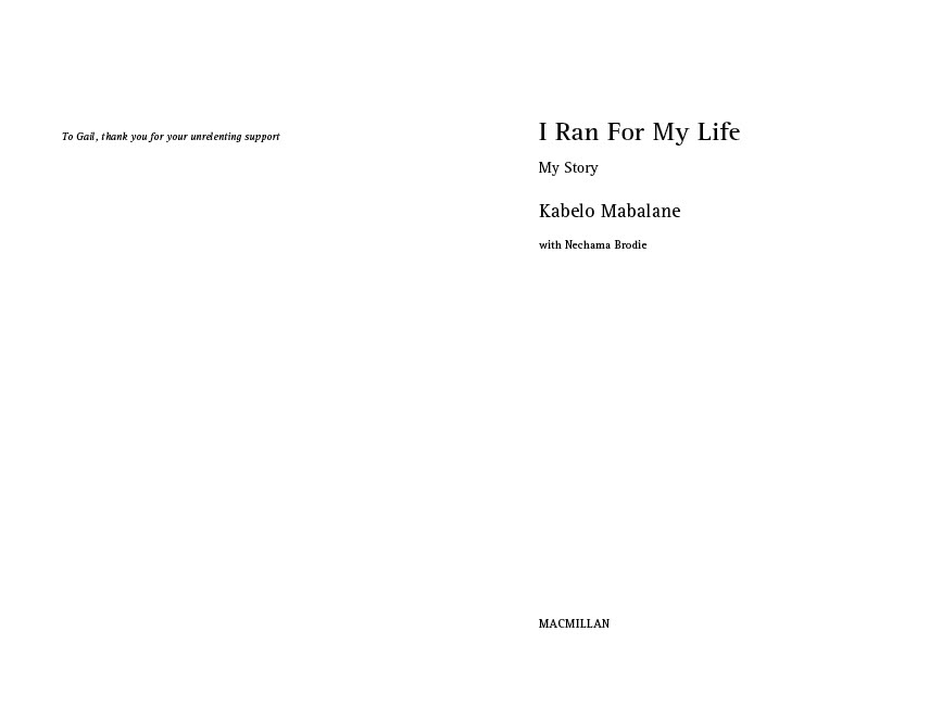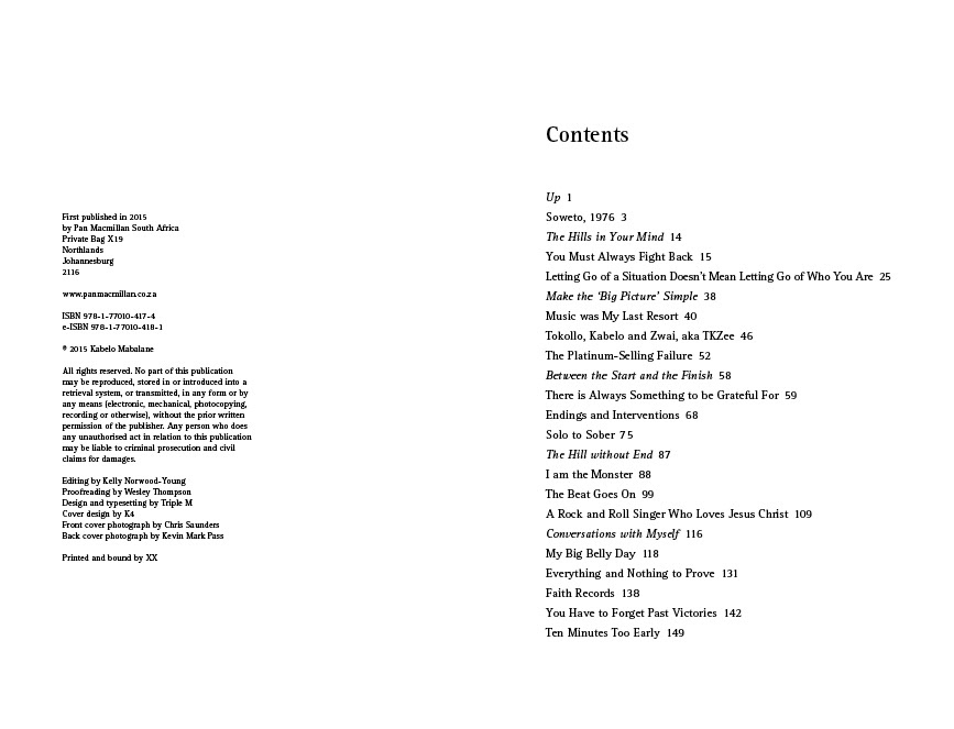First published in 2015 by Pan Macmillan South Africa ISBN 978-1-77010-417-4 Design and typesetting by Triple M Cover design by K4