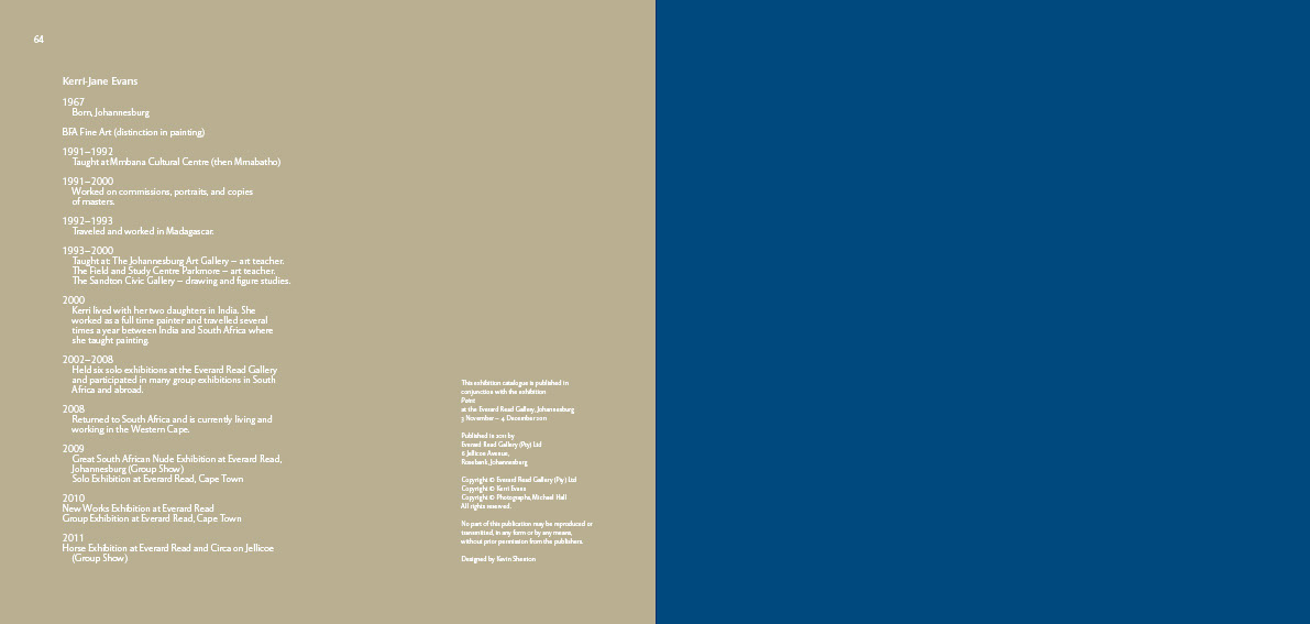 Kerri Evans: Paint. Client: Everard Read in Johannesburg Binding: soft cover Printed by: Ultra Litho Johannesburg Date: 2011