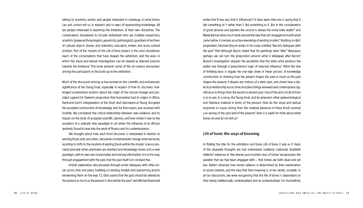 Art meets science at Wits Origin Centre, catalogue for the exhibition Life of Bone.