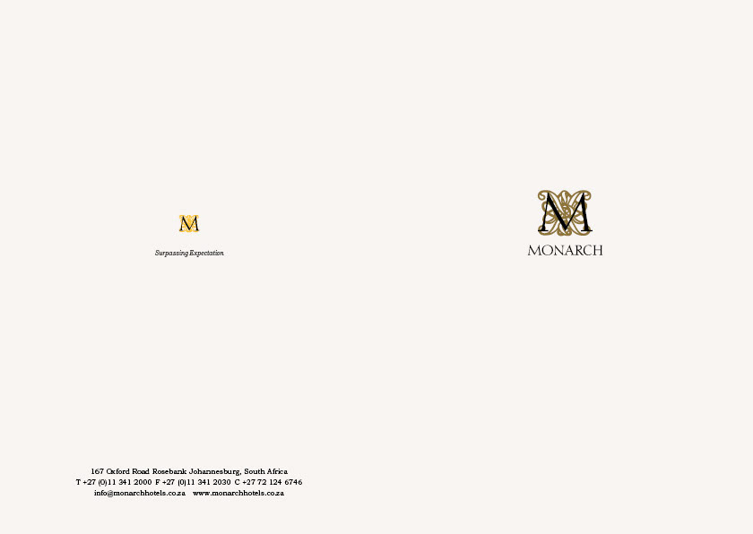 two different brochure designs for a Hotel in Johannesburg. The brochure was never printed beacuase the hotel was never launched.