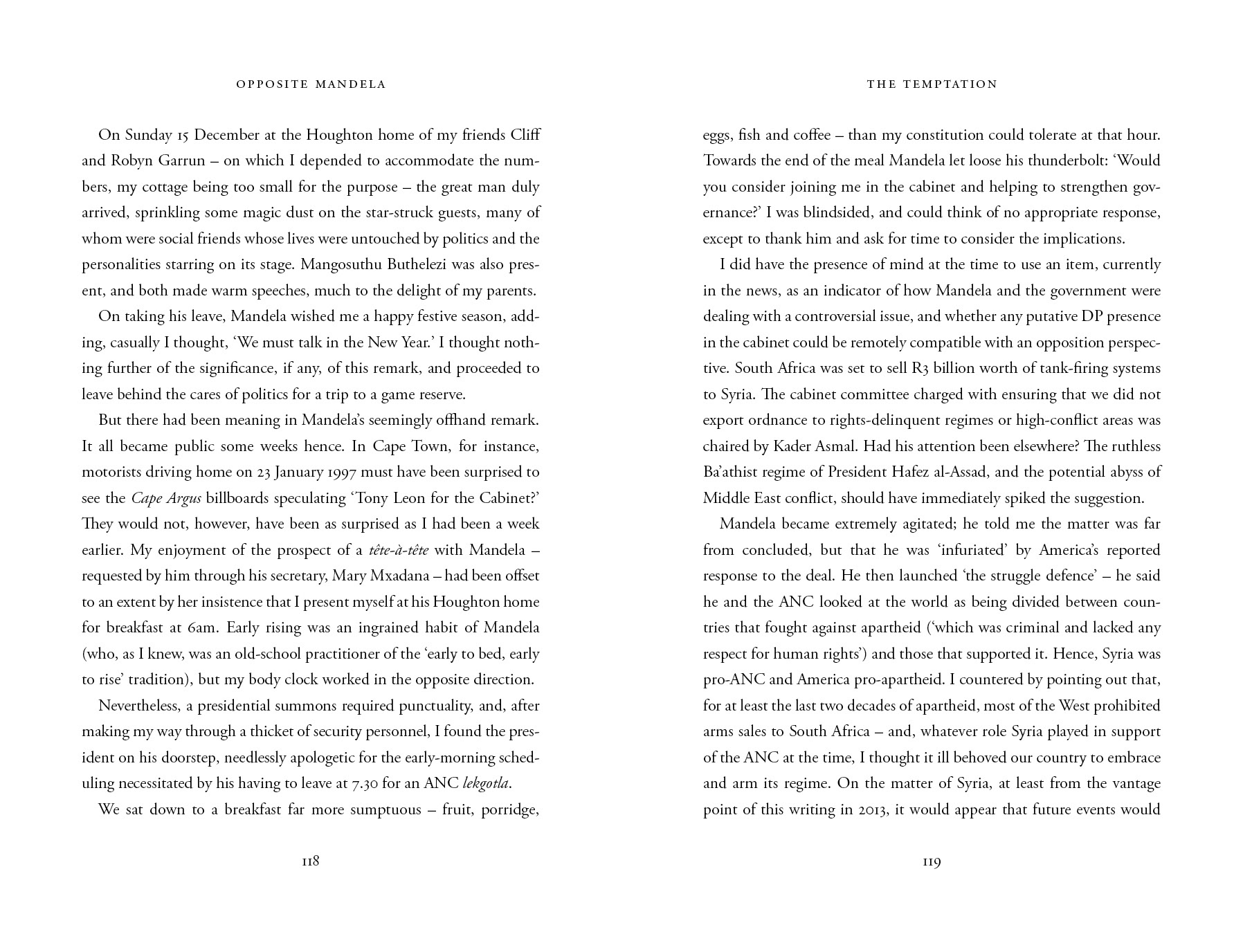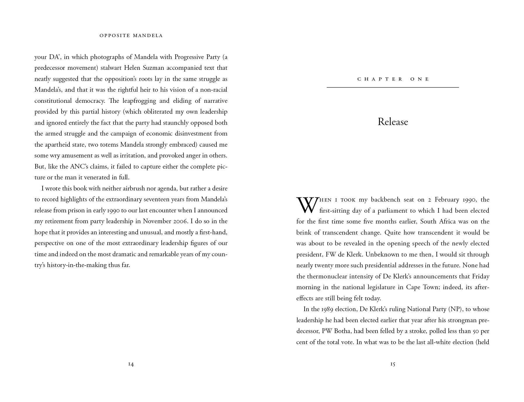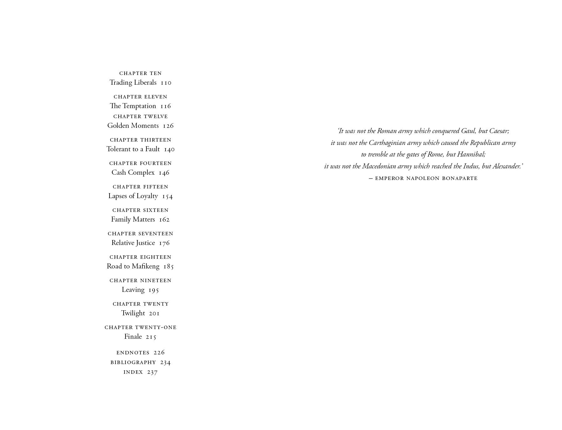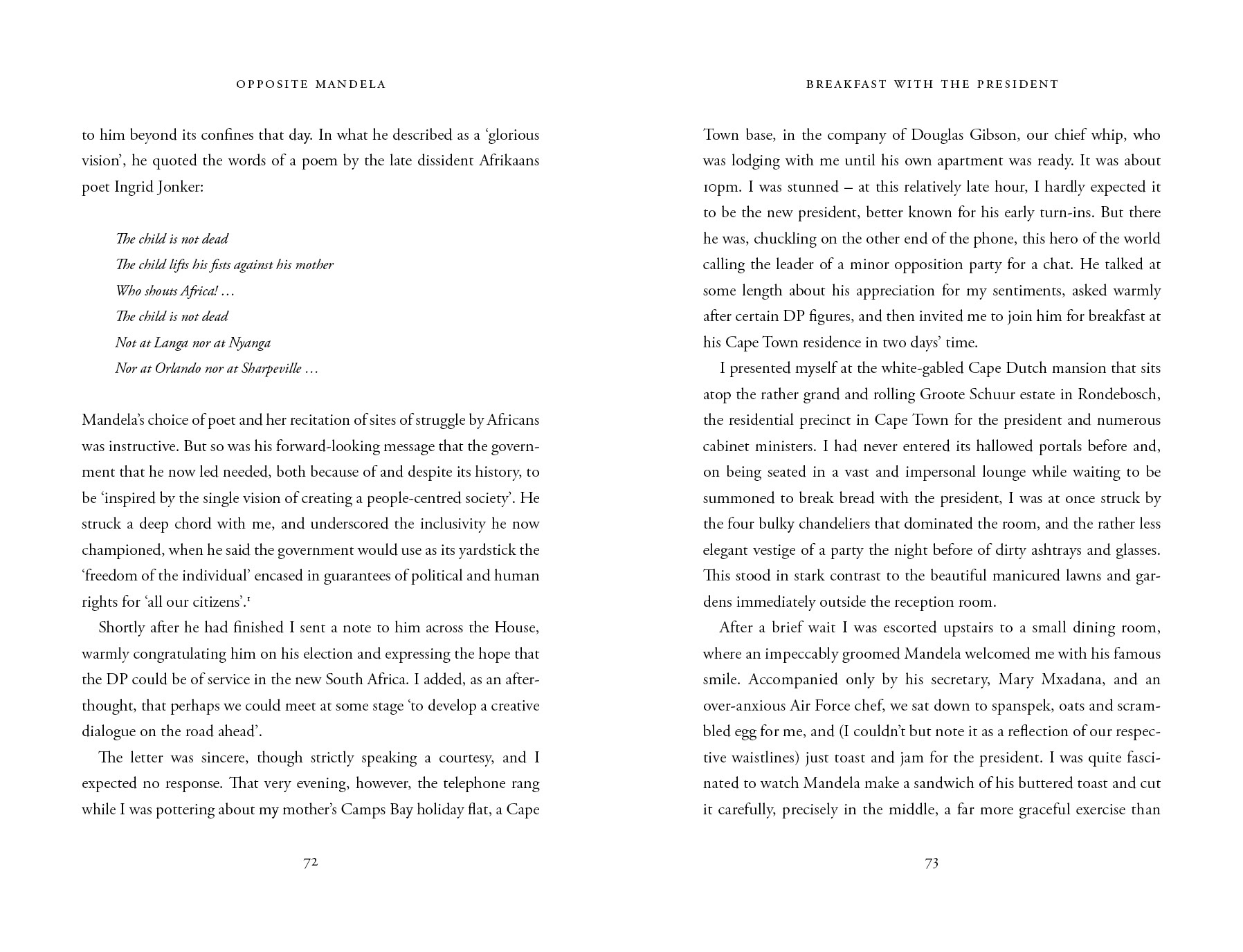 Design and typesetting by Triple M Design, Johannesburg Cover by Michiel Botha Printed and bound by Paarl Media, Paarl Set in 11,5/18 pt Adobe Garamond Pro Front cover photograph © Government Communication and Information System (GCIS) Back cover photograph © Gallo Images/Beeld/Halden Krog © Text Tony Leon, 2014 Originally published in South Africa in 2014 by JONATHAN BALL PUBLISHERS (PTY) LTD ISBN 978-1-86842-601-0 ebook ISBN 978-1-86842-602-7