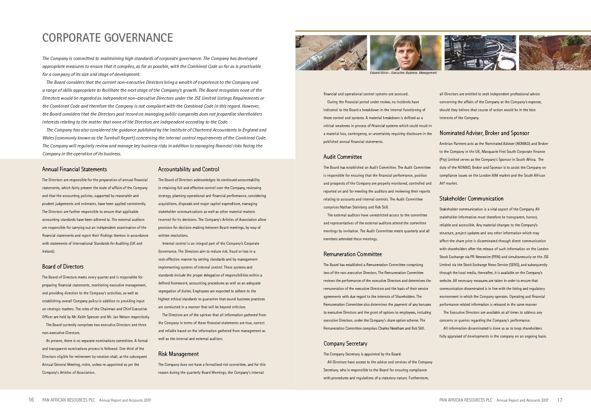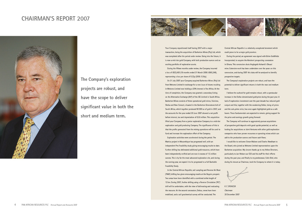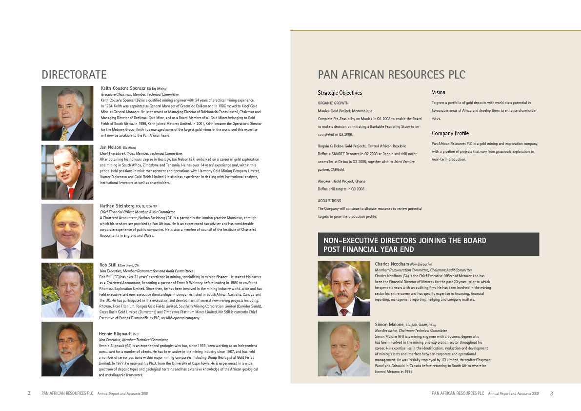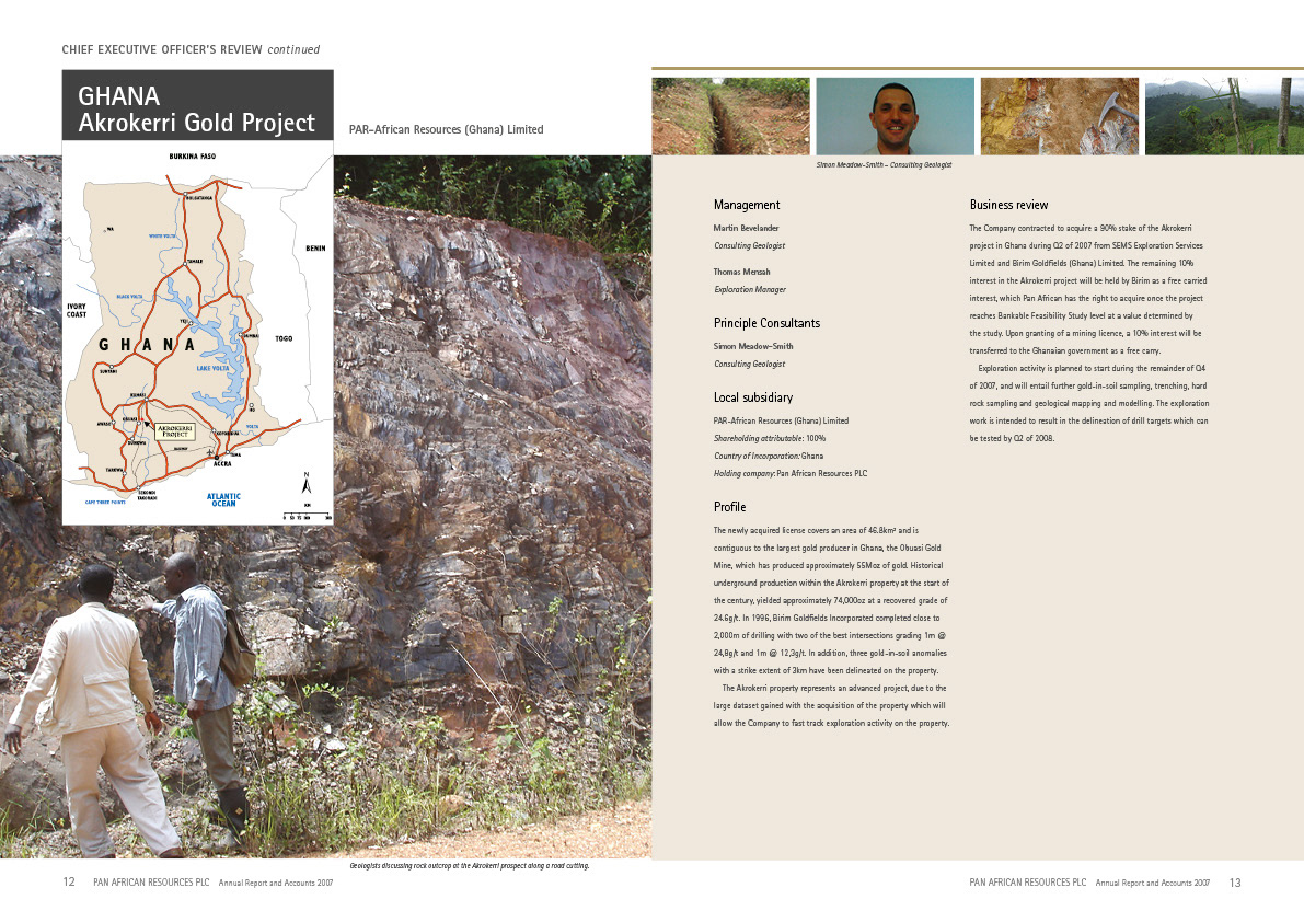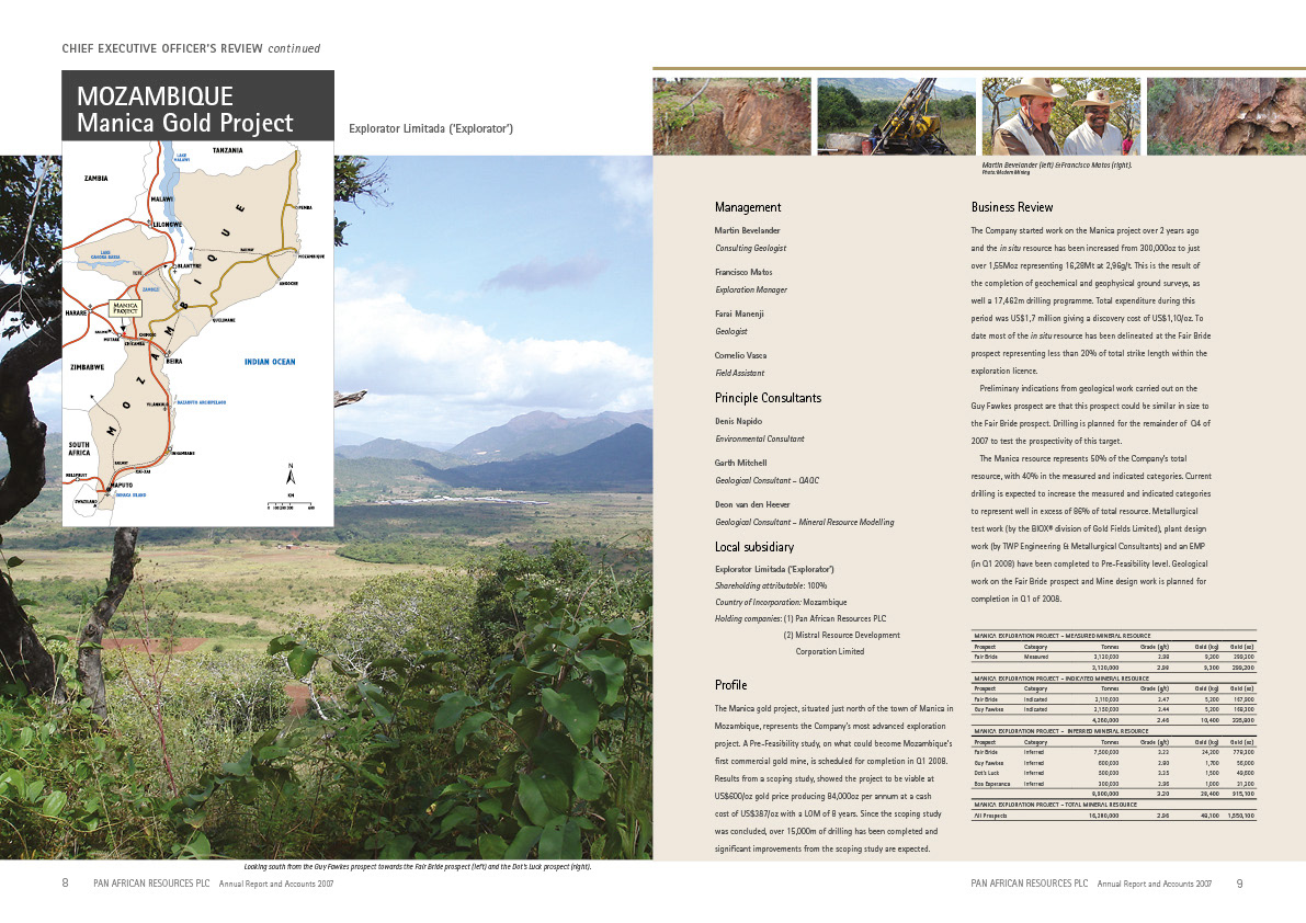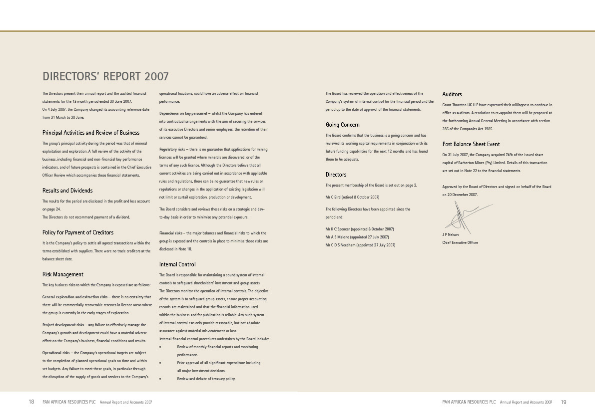 Client: Pan African Resources PLC Annual Report 2007 Printed by: Colour Press Printers, Johannesburg.