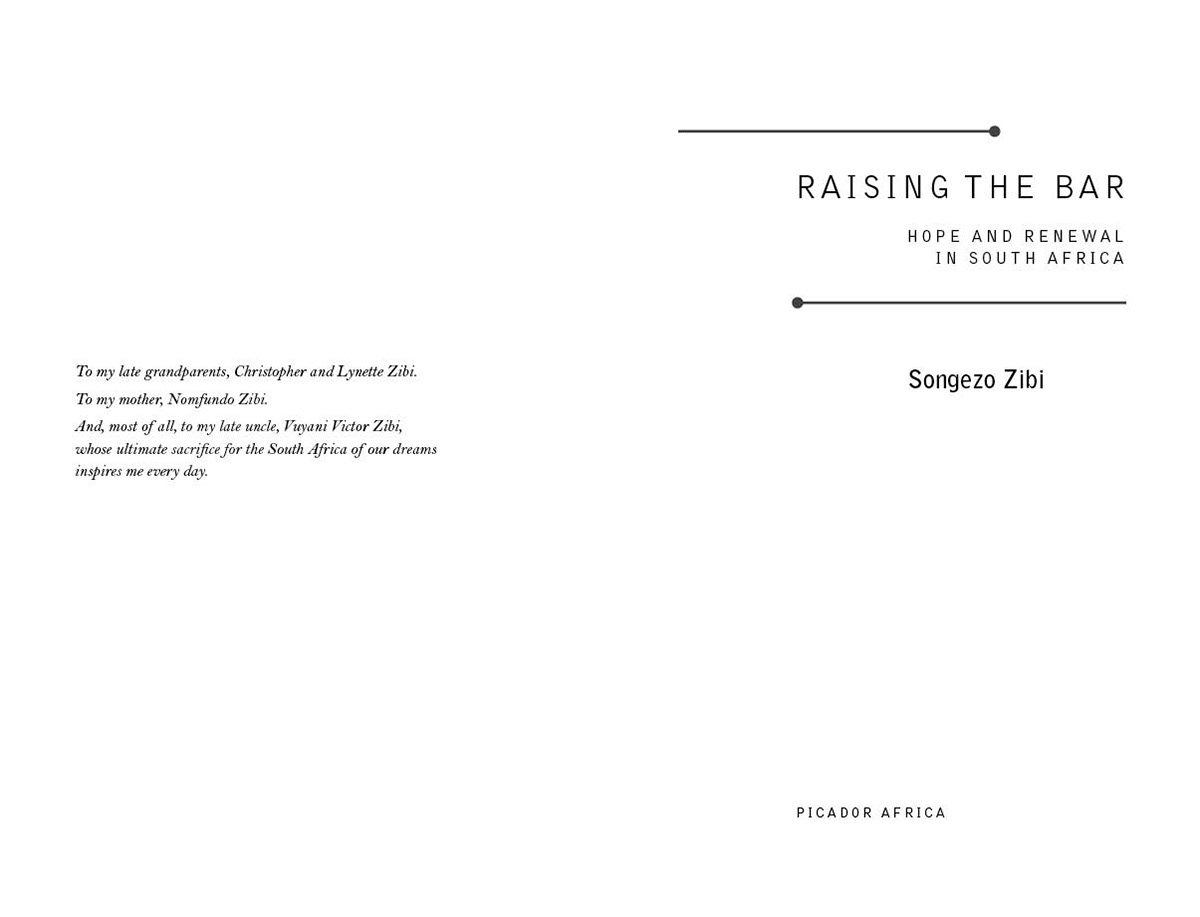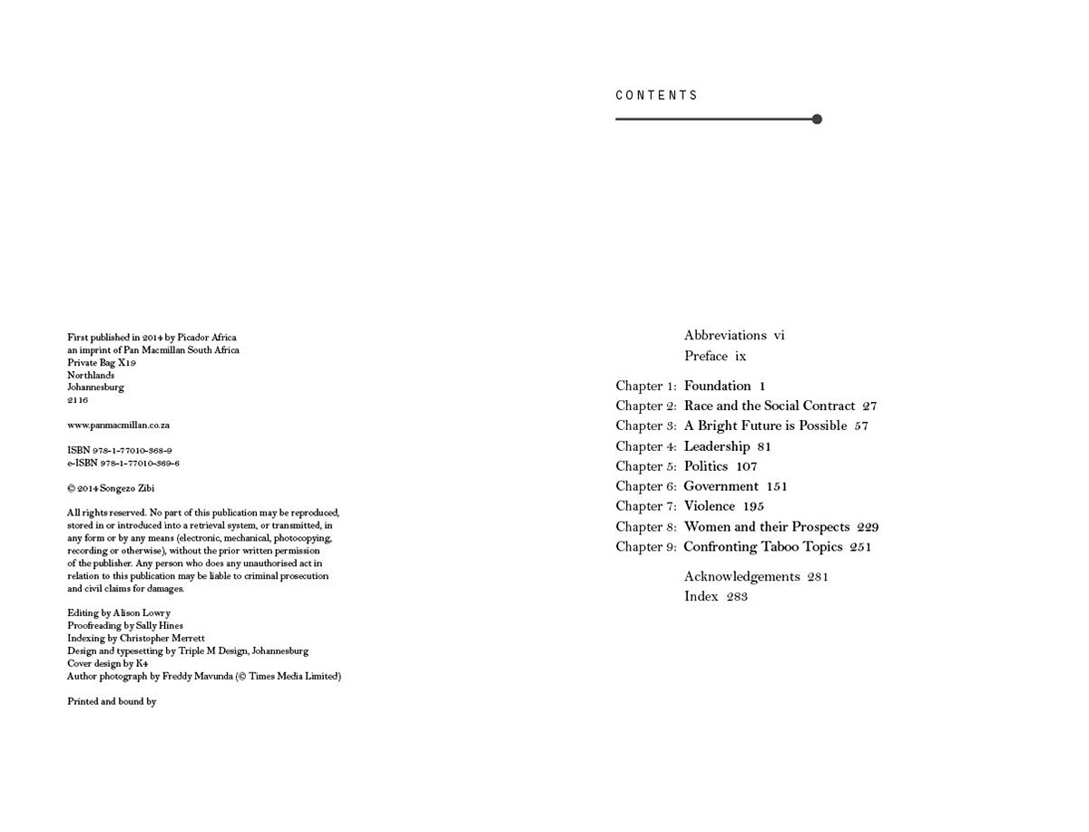 First published in 2014 by Picador Africa ISBN 978-1-77010-368-9 e-ISBN 978-1-77010-369-6 Design and typesetting by Triple M Design, Johannesburg Cover design by K4 Author photograph by Freddy Mavunda (© Times Media Limited)