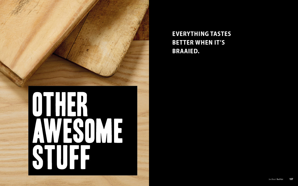 Book design for a cook book Client: Bookstorm Extent: 200 pages Printed by: Ultra Litho (Pty) Ltd, Johannesburg Date: 2013 (slip case cover designed by Jaco Erasmus)