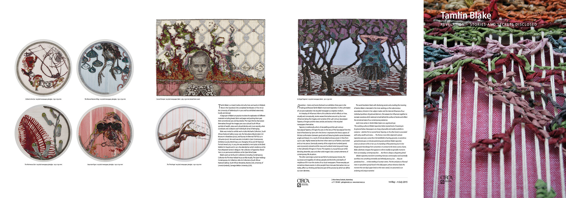 Tamlin Blake is a mixed media artist who lives and works in Riebeek West in the Swartland. She completed her Masters in Fine Art at the University of Stellenbosch in 2001 and has exhibited extensively locally and abroad. A large part of Blake’s art practice involves the exploration of different materials including beads, fabric and paper and pushing them past their conventional uses and boundaries.