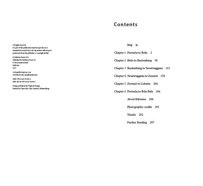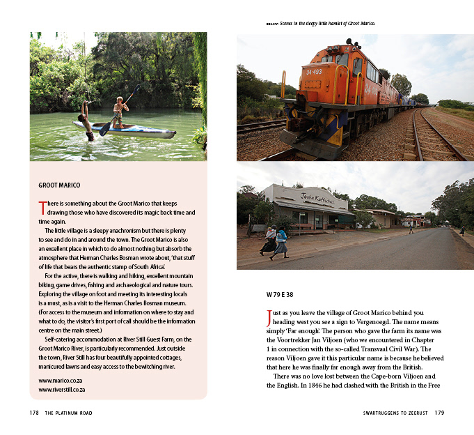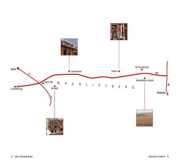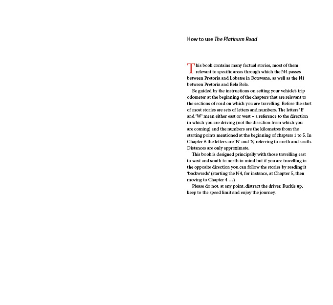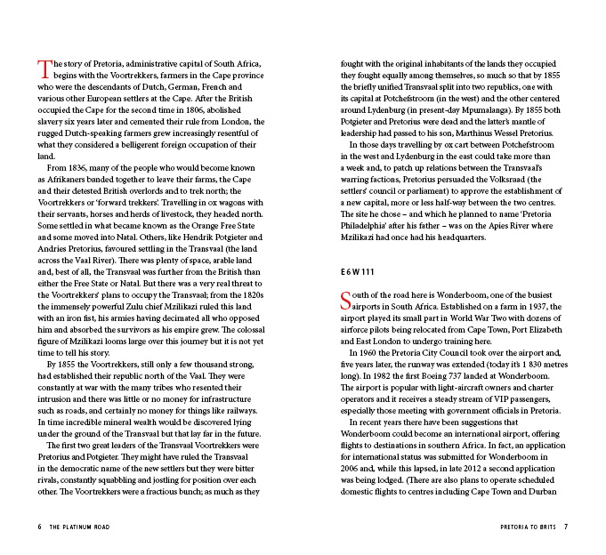 Book design and typesetting for a hand guide to the Platinum Road in South Africa.