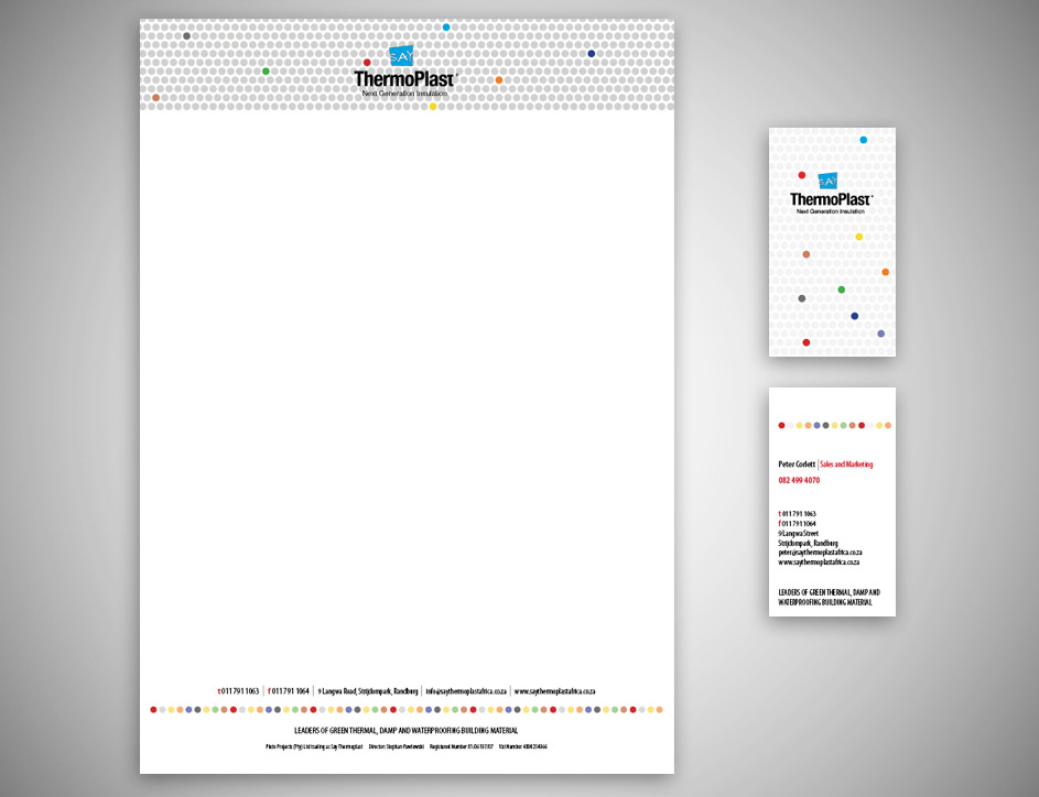Various stationery items for the company ThermoPlast, including letterhead, business card, 2 sided brochure and various sized banners.