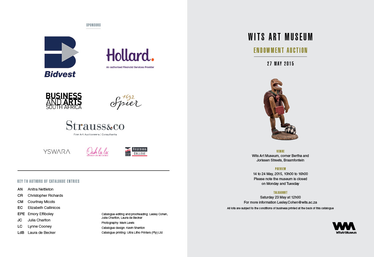 Catalogue editing and proofreading: Lesley Cohen, Julia Charlton, Laura de Becker Photography: Mark Lewis Catalogue design: Kevin Shenton Catalogue printing: Ultra Litho Printers (Pty) Ltd
