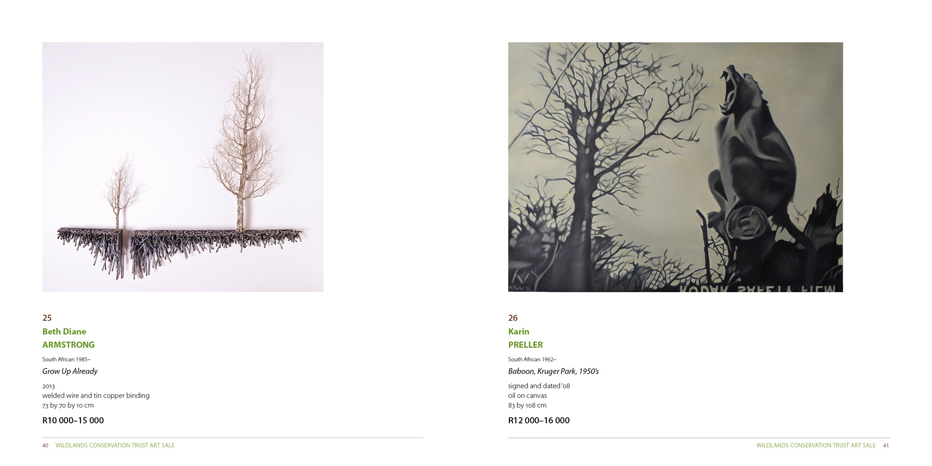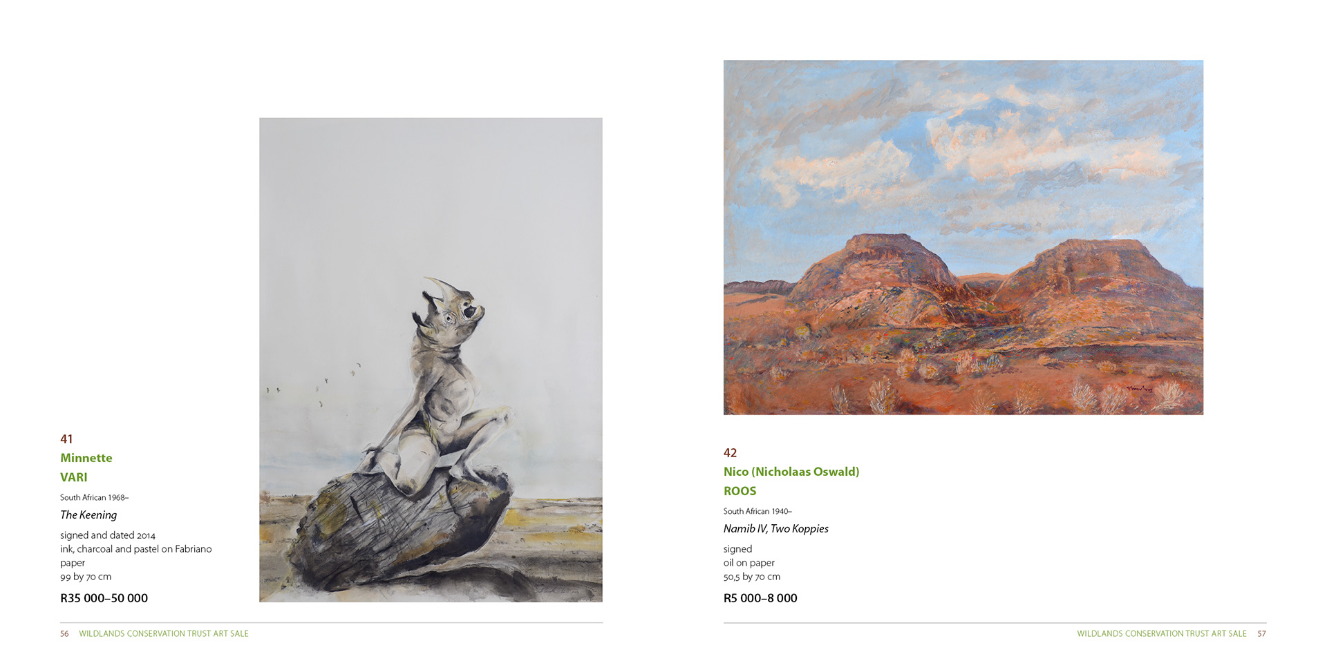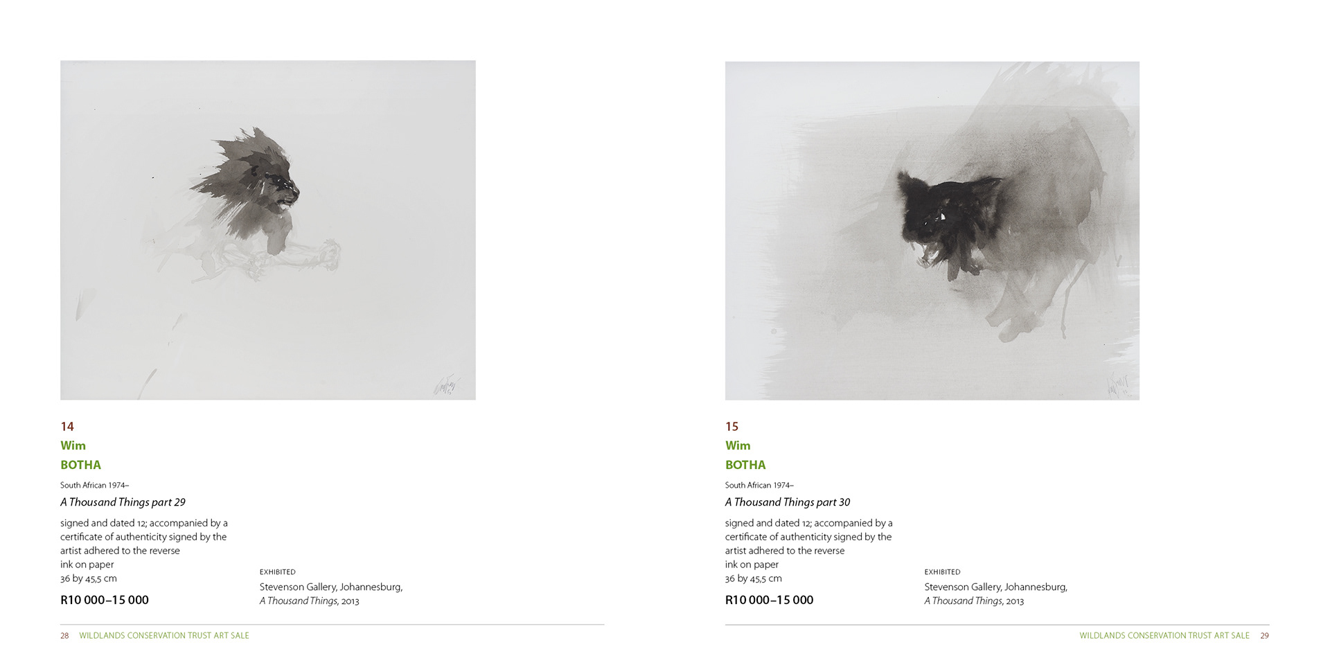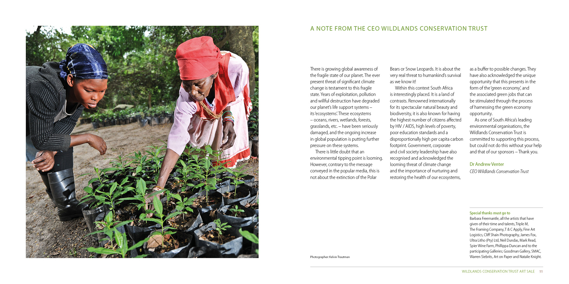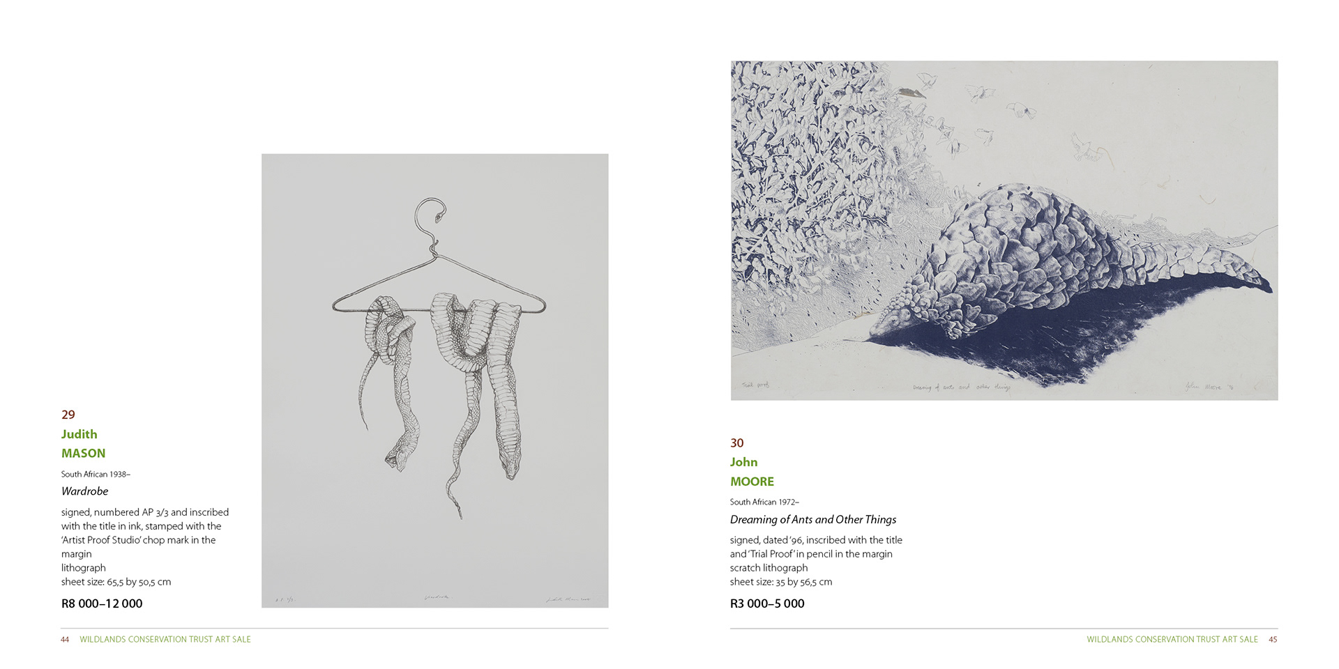 Catalogue for Wildlands Conservation Trust Charity Art Sale. Designed by Triple M Design Photography of artworks by Cliff Shain and James Fox