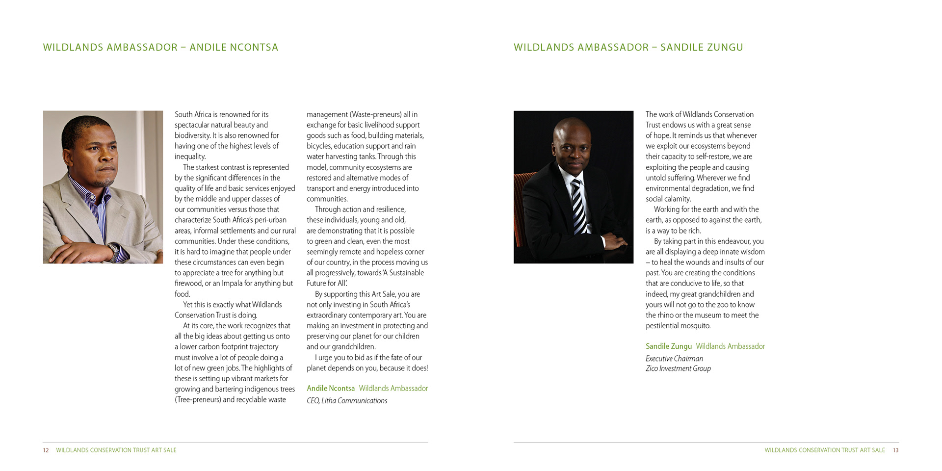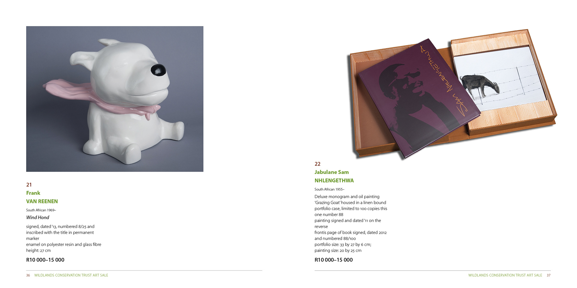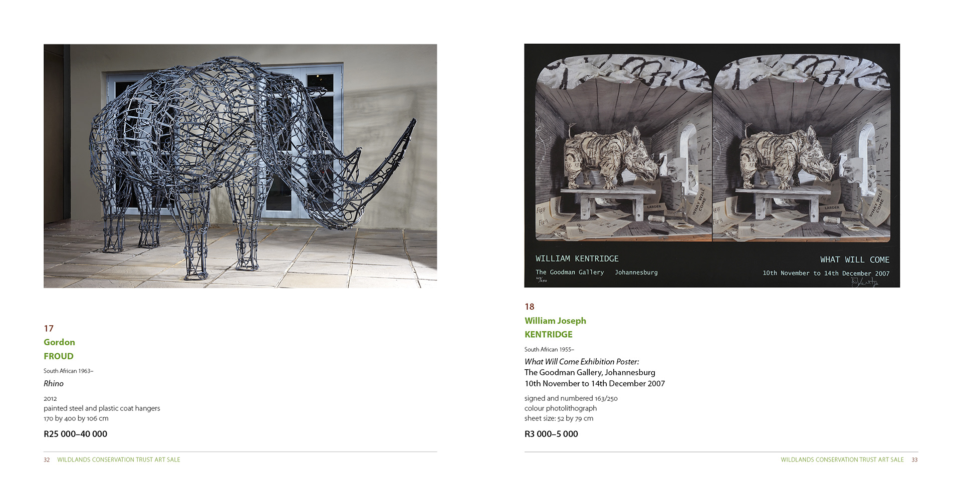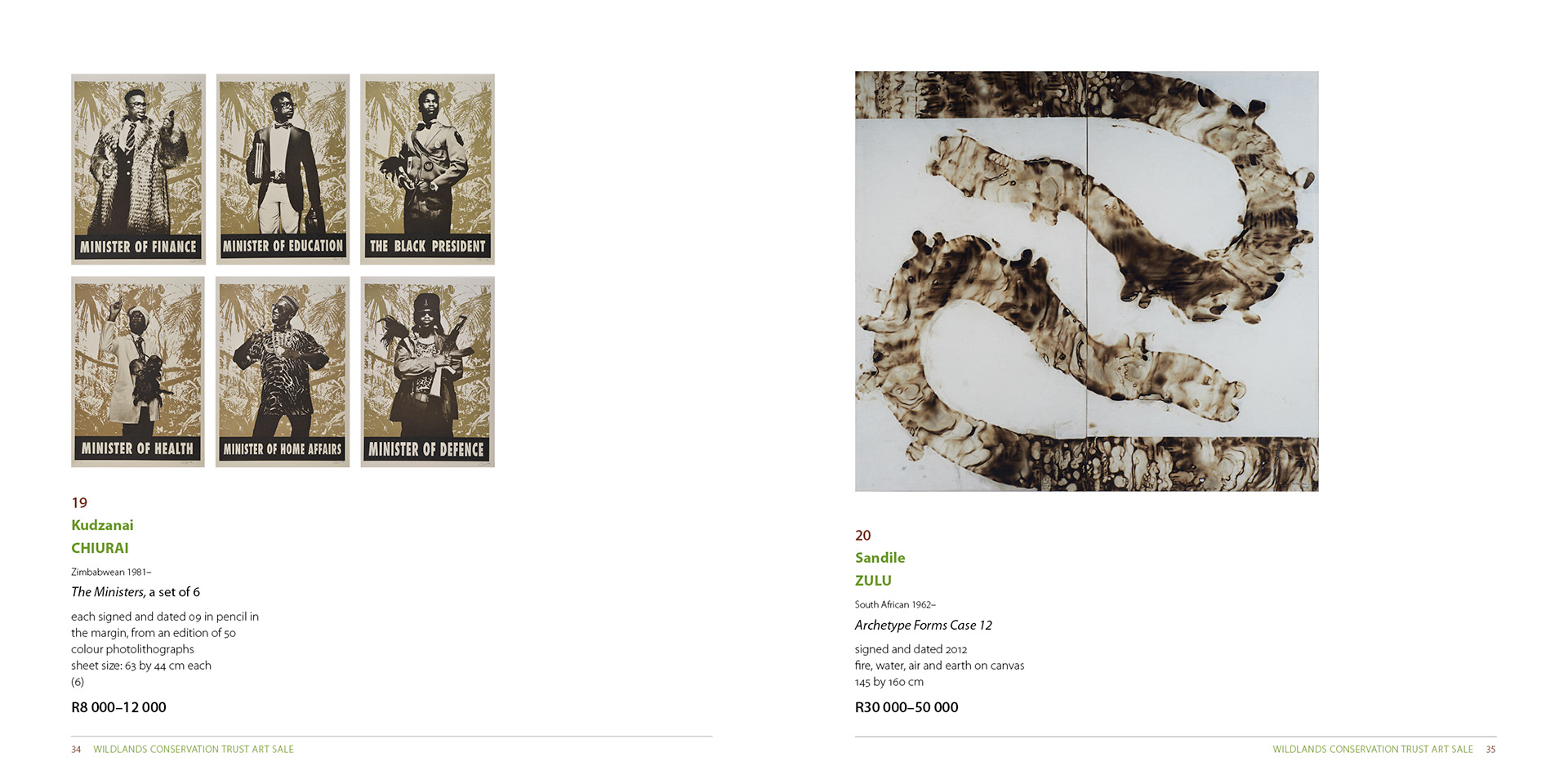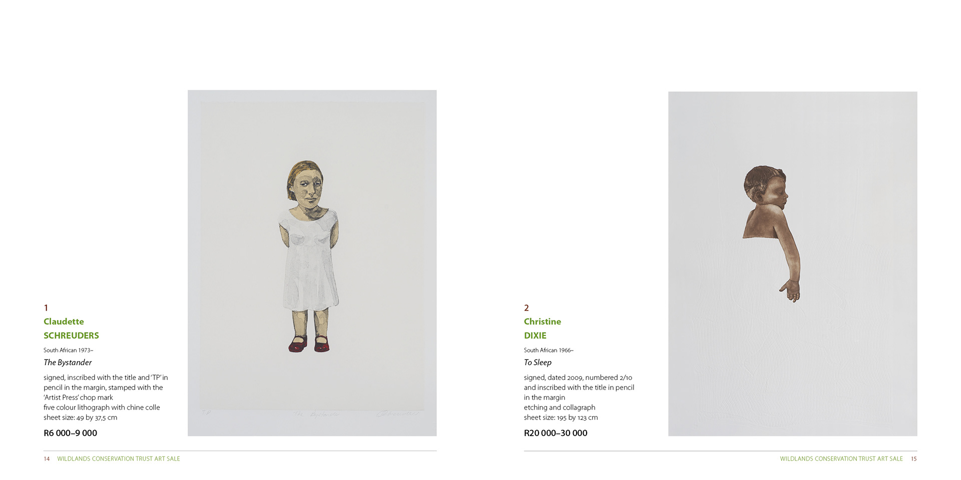 Catalogue for Wildlands Conservation Trust Charity Art Sale. Designed by Triple M Design Photography of artworks by Cliff Shain and James Fox