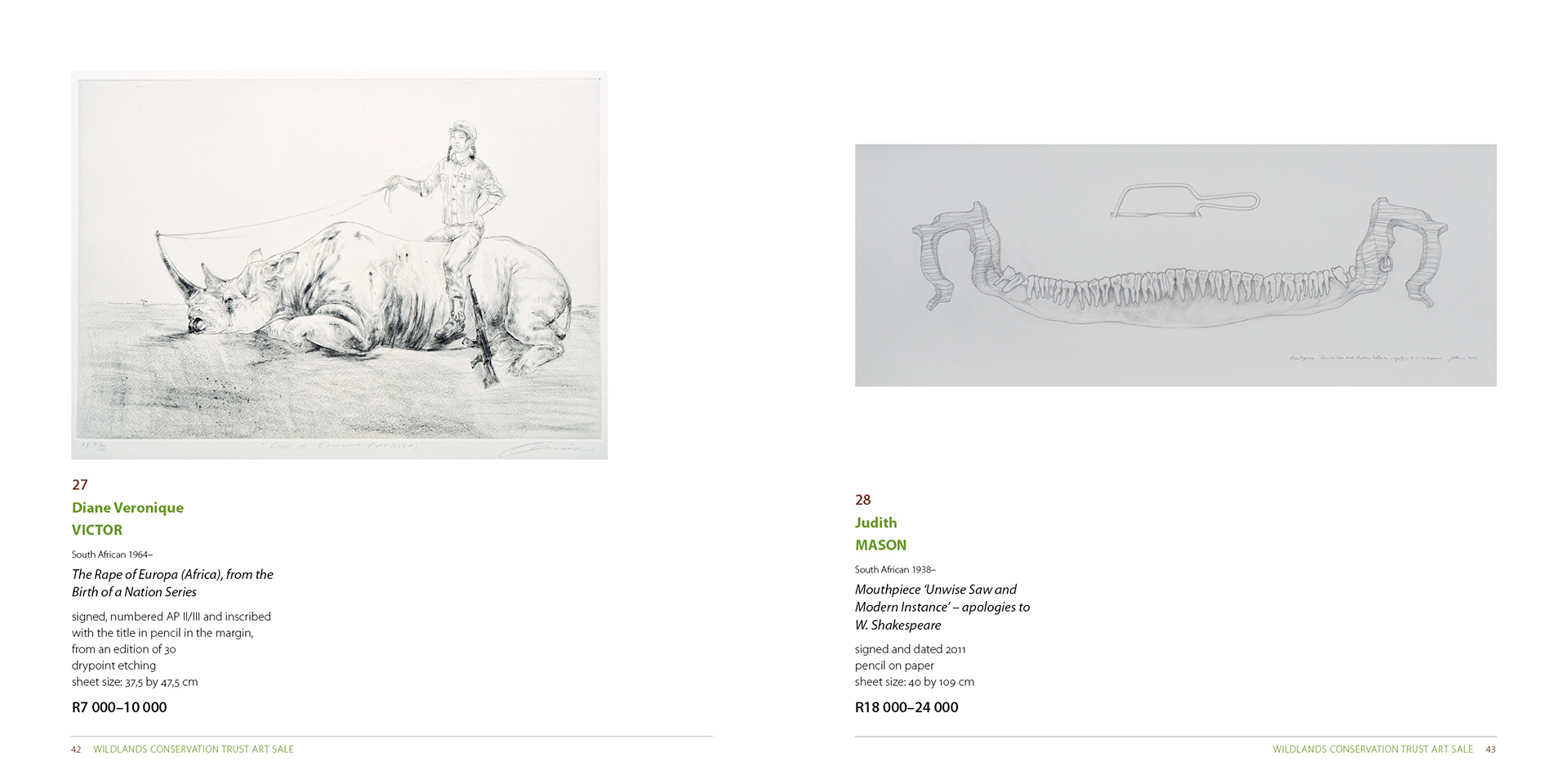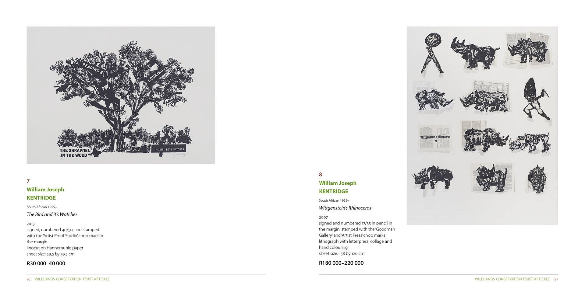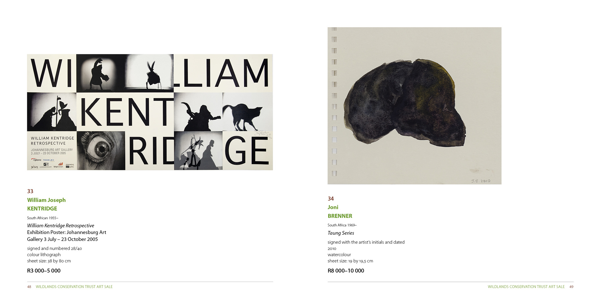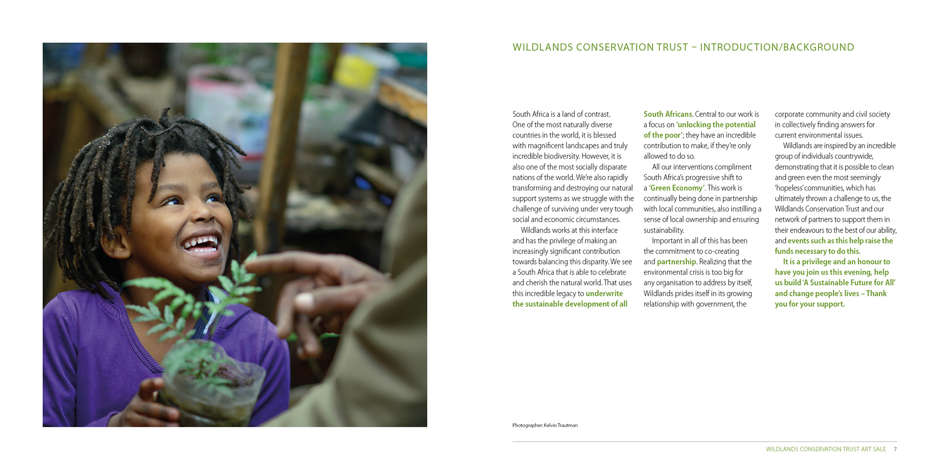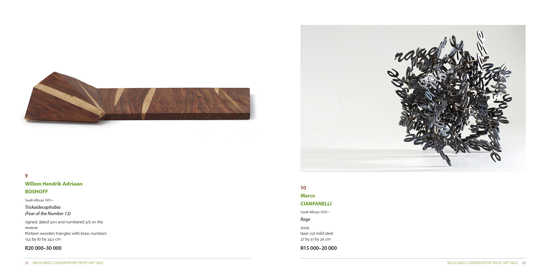 Catalogue for Wildlands Conservation Trust Charity Art Sale. Designed by Triple M Design Photography of artworks by Cliff Shain and James Fox
