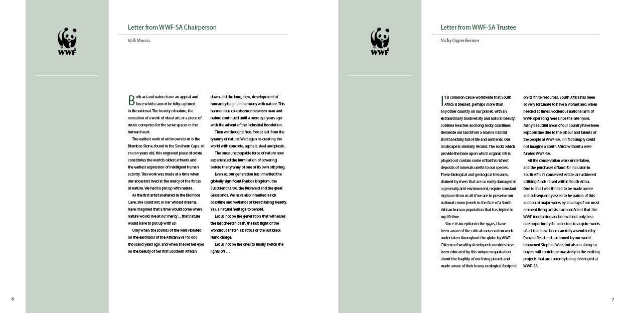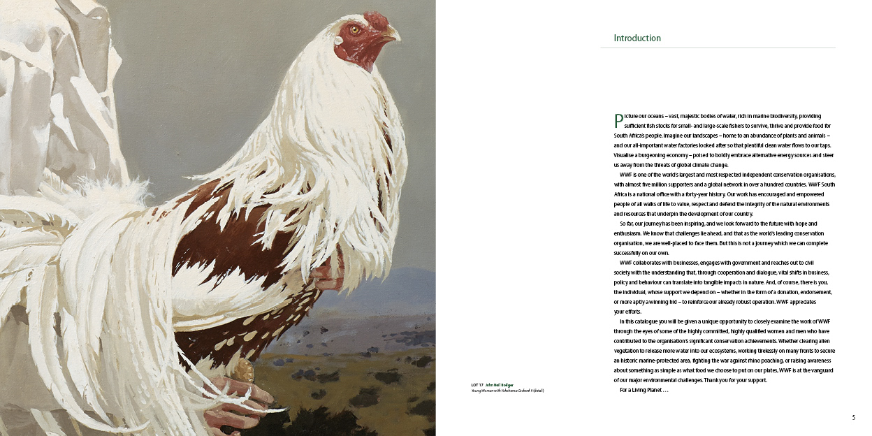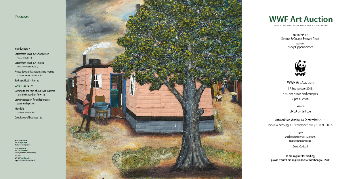 Catalogue for the WWF Charity Art Auction. Designed by Triple M Design Photography of artworks by James Fox Printed by Ultra Litho (Pty) Limited, Johannesburg