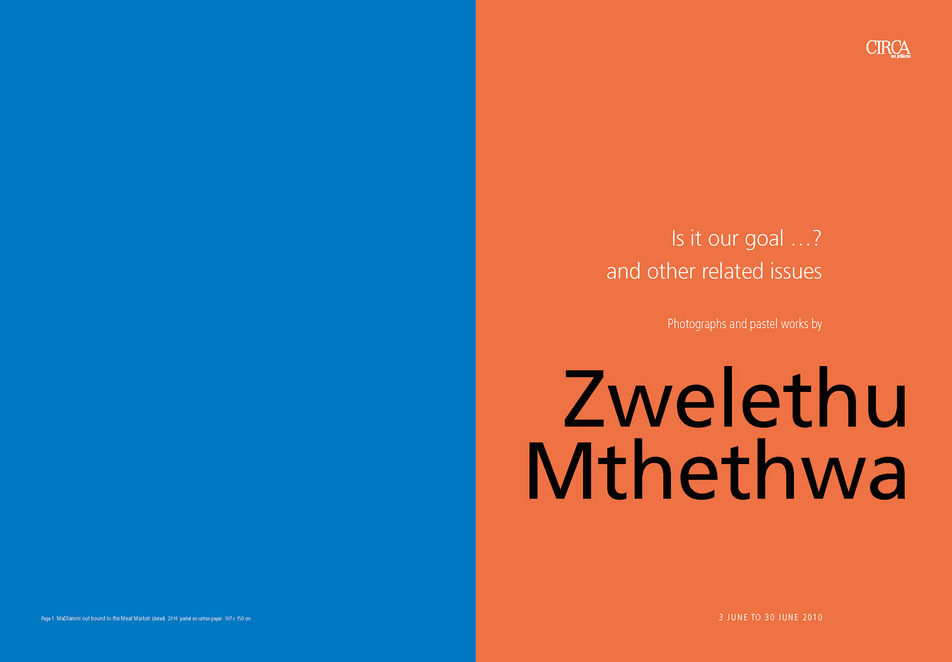 Is it our goal …? and other related issues – Photographs and pastel works by Zwelethu Mthethwa Published in 2010 by CIRCA on Jellicoe Printed by Ultra Litho, Johannesburg